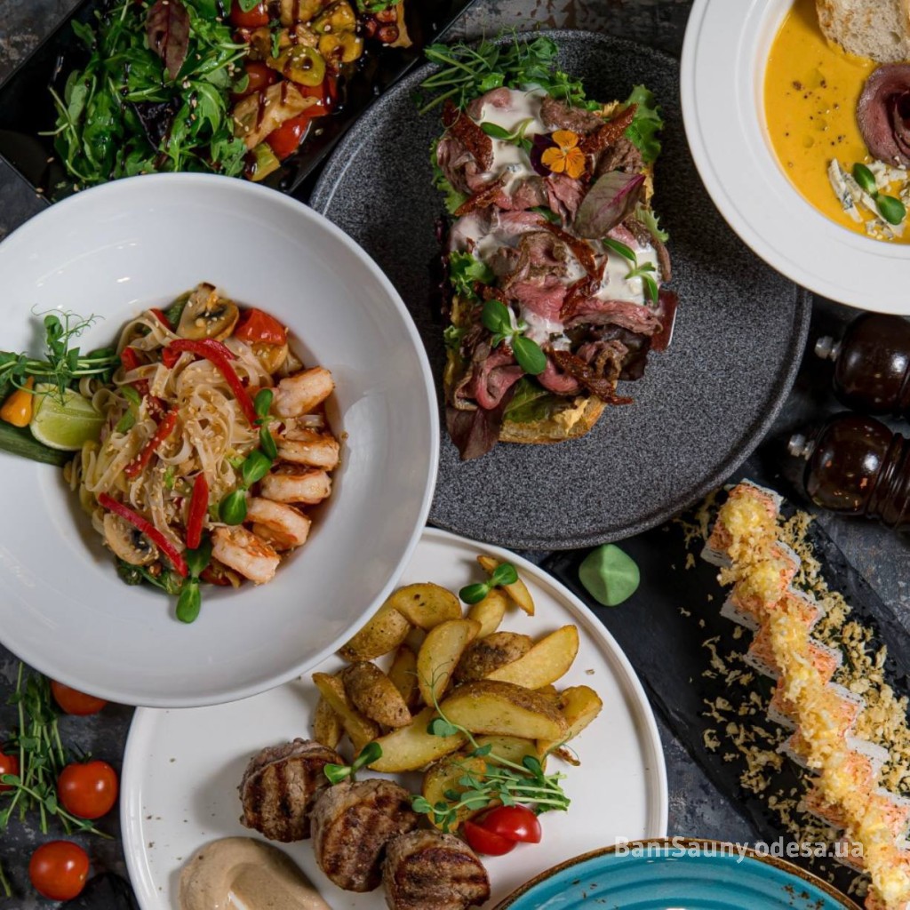 Послуги: ресторан, банкетний зал, бар, тренажерний зал, банщик, солярій